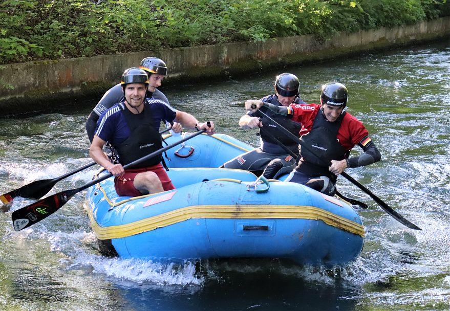 Wettkampf am Samstag mit dem Sprint undKurzinfo über den Wettkampf Modus. Wettkampf-Rafting ist ein Mehrkampf, der aus vier Teildisziplinen (Sprint, Head to Head, Slalom und Downriver) besteht, in denen Punkte gesammelt werden können. Wer am Ende die meisten Punkte auf dem Konto hat, gewinnt den Gesamttitel. Sprint: Im Sprint muss ein 200-600 m langer Wildwasserabschnitt schnellstmöglich bezwungen werden. Hier zählt einzig und allein die Zeit. Head to Head (H2H): Im H2H fahren zwei Boote die Sprint-Strecke gegeneinander. Wer zuerst die Ziellinie überquert, ist eine Runde weiter. Das macht diese Disziplin zu einem klassischen Ausscheidungswettkampf. Besonders der Start ist oftmals ausschlaggebend für den Sieg. Slalom: Diese Disziplin ist an den Kanuslalom angelehnt. Auch hier müssen Tore sowohl flussabwärts als auch flussaufwärts durchquert werden. Hierbei kommt es nicht nur auf die schnellste Zeit an, sondern auch auf akkurates Fahren: Sobald ein Tor falsch befahren wurde, werden der Laufzeit Strafsekunden hinzugezählt . Diese Disziplin ist die wohl technisch anspruchsvollste. Downriver: Der Downriver zählt als Königsdisziplin des Wettkampf- Rafting. Hier muss taktisches Kalkül, Ausdauer und Fahrtechnik im Wildwasser unter Beweis gestellt werden. Los geht es oftmals im Massenstart auf die 30- bis 70-minütige Abfahrt. Mehr Infos gibt's hier! Marianne