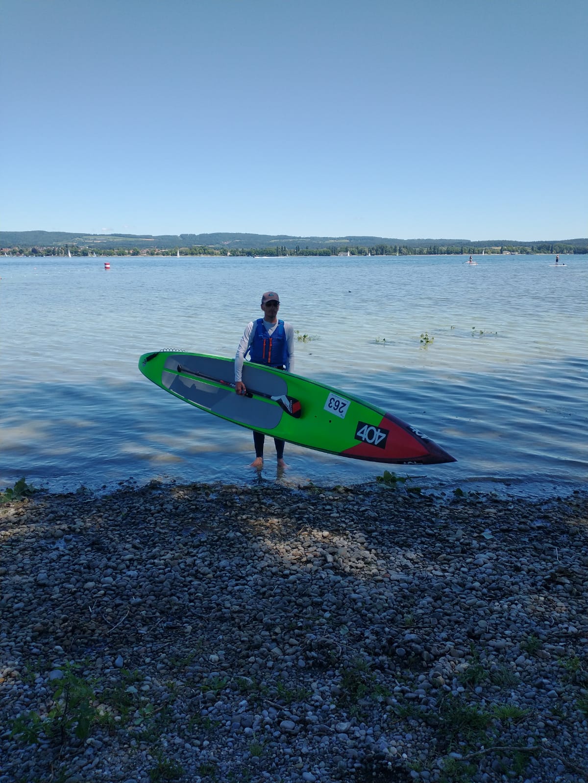 stellen. MS: BKV Ressortleiter für SUP (Stand Up Paddling) Wolfgang Kennel hat wieder SUP Instruktoren ausgebildet und Du Thomas zählst hier auch dazu. Wir freuen uns, wenn Du Dein Wissen an die SUP Interessierten bei den Kanu Schwaben weitergeben wirst. Wie sieht Dein Tätigkeitsfeld aus? THH: Als Sup Instruktor führe ich Interessierte in das Stand Up Paddling – SUP – ein. Das fängt an bei einer kleinen Materialkunde, Sicherheit, Paddelgrundtechnik bis hin zum Naturschutz. MS: SUP hat eine wachsende Anhängerschaft, wie kommt es dazu und welche Trainingsmöglichkeiten bieten hier die Flüsse und Seen in der Region Augsburg und besonders welche sind zu empfehlen? THH: In der Tat die Anhängerschaft ist in den letzten Jahren stetig gewachsen, was sicherlich nicht nur an den verschiedenen Reizen des SUP’pen liegt, wie sich in der Natur zu bewegen, Gutes für den Körper zu tun - es werden beim SUP'pen viele Muskelgruppen und der Gleichgewichtssinn angesprochen. Ich denke, auch die Corona Lockdown’s haben dazu beigetragen, denn Verreisen war ja nicht möglich. Im Raum Augsburg bieten einige Seen und Flüsse je nach Können gute Gelegenheiten zum Paddeln, am bekanntesten dürfte der Mandichosee sein, aber auch der Lech bietet viele Möglichkeiten. Und wer ein “paar Minuten” mit den Öffentlichen oder Auto investiert, dem eröffnen beispielhaft Ammersee, Wörthsee, Pilsensee und Starnberger See viele Paddelspielplätze. MS: Welche Boards sind für den Anfänger am besten geeignet und welche Paddelgröße (Paddelschaft) sind zu empfehlen? ![]() MS: Du bist ja auf eine sehr aufgeschlossen leidenschaftliche Kanu Schwaben SUP Gruppe gestossen, wie groß ist diese Gruppe und können auch interessierte Jugendliche mit einbezogen werden? THH: Ja, in der Tat, das ist eine coole Truppe. Ich glaube wir sind aktuell zu zehnt. Die Gruppe wächst stetig an. Wir sind eine offene Gruppe. Jede / Jeder ist willkommen, auch Jugendliche. Paddel-Erfahrung sowie ein entsprechendes Board (schnelleres Board) sollte schon vorhanden sein, um auch mal schnelle und ausdauernde Runden zu paddeln. MS: Interessant sind auch für die Fortgeschrittenen irgendwann die zahlreichen SUP Wettkämpfe, besonders Alps Trophy hört sich spannend an. Es gibt ja verschiedene SUP Wettkämpfe wie Long Distance mit 10 km, Short Distance mit 3 km sowie 200 m Sprint, Technical Race usw. In welcher Distance startet ihr am Liebsten und und was macht den Reiz an SUP Wettkämpfen aus? THH: Das ist eine gute Frage, was den Reiz angeht. Wir kommen alle aus verschiedenen Sportarten und haben dort schon an Wettkämpfen teilgenommen. Da lag es auf der Hand auch bei SUP Wettkämpfen zu starten und sich ein wenig zu messen. Man trifft alte und neue Bekannte / Gleichgesinnte, plaudert, fachsimpelt über neues Material und kommt ein bischen herum (Bodensee, Altmühlsee, Pilsensee, Isar, Gardasee um nur einige zu nennen)...und beendet den Tag mit einem geselligen Beisammensein. Manchmal wird auch gegrillt. Wir starten je nach Können, Lust und Laune auf unterschiedlichen Distanzen, mehrheitlich allerdings bei 10 km oder 3 km. MS: Schwabenkanute Normen Weber – Wildwasser Rennsportler nimmt auch bei diversen SUP Wettkämpfen sehr erfolgreich teil und besucht zudem internationale Wettkämpfe. Holt ihr euch Tipps von ihm oder ergibt sich sonst die Gelegenheit zum speziellen Erfahrungsaustausch? ![]() MS: Nun würde uns noch interessieren, wie alt Du bist, wie kam Deine Leidenschaft für den SUP Sport kamst und welches Deine besonderen Erfahrungen damit sind? Was sind Deine weiteren Ziele? THH: Ich bin 42 Jahre jung. Ich wollte schon immer auf dem Wasser unterwegs sein, mich hatte nichts so richtig angesprochen. Dann kamen Anfang der 2010er Jahre die ersten SUP’s, insbesondere die aufblasbaren Boards (auch Inflatable). Meine Frau hat mich dann mit einem Schnupperkurs überrascht. Meine Leidenschaft war damit geboren. Viele Boards sind inzwischen gekommen und gegangen... Das SUP’pen ist ein sehr naturnaher Sport, das gefällt mir, da ich auch gerne in den Bergen und am Fels unterwegs bin. Auf dem Wasser (so wie in den Bergen) den Alltag hinter sich lassen und den ein oder anderen Sonnenaufgang (für Frühaufsteher) und vor allem Sonnenuntergang auf dem Wasser genießen. Ich verbinde damit schöne naturnahe Erlebnisse und lernte die Natur auch von anderen Seiten kennen (Wind, Wellen, Strömung,...) Als “blutiger” Anfänger bin ich damals 12 km am Brombachsee bei dem 1. European SUP Meisterschaften einfach so mitgepaddelt, das war ein Race mit allen Facetten, Sonne, Wind, Wellen... irgendwie habe ich es dann doch geschafft, die 12 km durchzuhalten und es hat einfach riesig Spaß gemacht... und den habe ich bis heute nicht verloren. SUP macht ein wenig süchtig... SUP gibt es mittlerweile auch im Wildwasserbereich, hier möchte ich noch mehr erfahren und zu guter letzt mich treiben lassen, was sich in Sachen SUP bei Kanu Schwaben so tut. Zu meinen Zielen... Nachdem es inzwischen viele verschiedene Events gibt, wie z. B. 24 Stunden Rennen, Marathon etc. möchte ich irgendwann mal bei so einem “Rennen” dabei sein. Wir bedanken uns recht herzlich für das Interview und wünschen Dir und den anderen SUP Begeisterten eine tolle Zeit und viel Erfolg. Thomas HH besuchte übrigens am Wochenende den Bodensee Marathon.Seit 2014 sind auch SUP´ler beim Bodensee Marathon dabei, 2016 absolvierte eine Schweizerin die gesamte Distanz über 42 km in 5:28 Stunden auf dem SUP-Board. Die meisten Teilnehmer starten gewöhnlich im K1 der Herren auf der Halbmarathon-Distanz, gefolgt von den Marathon-Startern im K1 der Herren. Thomas Hanke-Hanel errang beim 25. Bodensee-Kanu-Marathon in Iznang auf der Halbmarathonstrecke den 3. Platz (Gesamtzeit 2:30:40 AM Stunden) in der Bootsklasse SUP. Für ihn war der Halbmarathon ein tolles Ereignis und die Freude war groß über seinen 3. Platz. Da die anderen Schwaben SUP-ler zur Zeit Urlaub in verschiedenen Lände