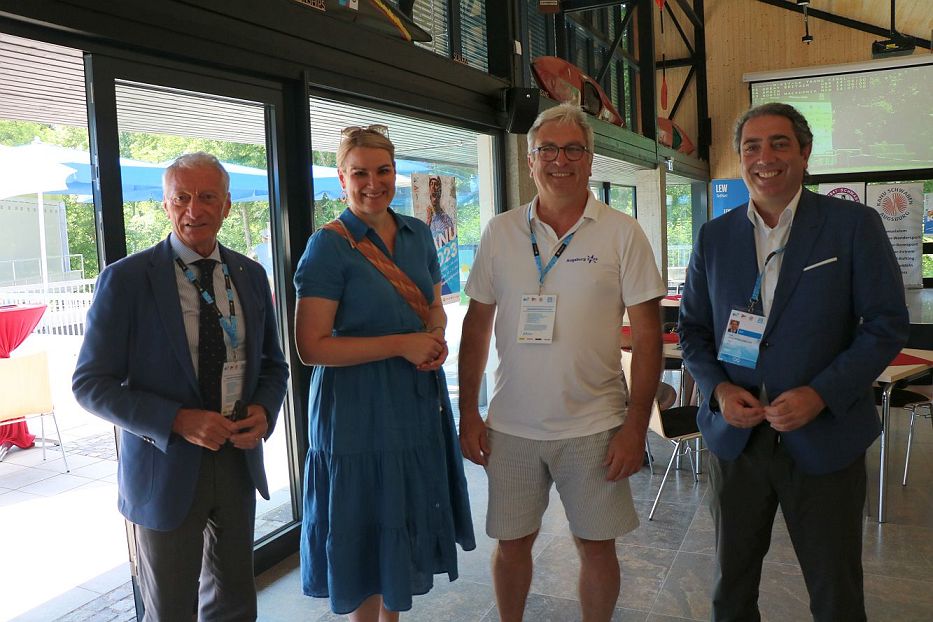 Bild: Team C2 Constanze und Sabrina Nun sind zwei ereignisreiche Wochen hinter uns und wir können stolz darauf sein, nach dem erfolgreichen Kanuslalom Weltcup bereits eine Woche später die Wildwasser Sprint Weltmeisterschaft erfolgreich ausgerichtet zu haben. Chapeau an die Organisationsleitung und Wettkampfleitung! 20 Nationen aus 4 Kontinenten mit über 150 Athleten waren in Augsburg vertreten. Eine erfolgreiche Development Gruppe war von Montag bis Sonntag unter den Fittichen von unserem Olympia Teilnehmer 1972 Bernhard Heinemann sehr gut und harmonisch verlaufen. Das Wetter war herrlich, der Wasserstand hat auch gepasst und der Olympiakanal hat wieder den Wildwasser Sprint Kanutinnen und Kanuten gezeigt, dass er einfach nicht so locker wie es von außen aussieht, befahren werden kann. Mancher Dreher nach der Bogenbrücke hat so einigen die Medaillenchancen verhagelt. Konzentration ist bei dieser Sportart genauso wichtig, einen Moment Unachtsamkeit, dass wird gleich schwer bestraft und der Sportler muss zurück in die Ideallinie so rasch wie möglich, was natürlich Zeit kostet. Die Presse/Medien waren sehr gut vertreten und TV wie ATV und BR waren vor Ort. Bild: Fotografen Sabine Süß