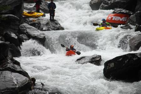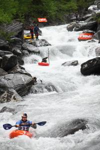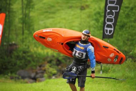 Überholmöglichkeiten, so dass der Start ganz besonders wichtig war. Wer sich nicht schnell durchsetzen konnte, musste auf kleine Fehler des Gegners hoffen oder ihn in Fehler treiben. Mann gegen Mann mussten sich dann einige bekannte Namen verabschieden. Mike Dawson und Johann Rozenburg (beide Neuseeland), Lasko Honza und Viktor Legat (beide Tschechien), aber auch Fabian Dörfler, Philip Baues, Basti Lexa und viele weitere Augsburger erreichten nicht das Finale. Hier kämpfte der Lokalmatador Ron Fischer und Jakobus Stenglein um die beste Linie. Bereits kurz nach dem Start musste der Schweizer eine Eskimorolle einlegen und Jakobus Stenglein konnte seine Ehrenfahrt relativ ungestört bis ins Ziel bringen.
