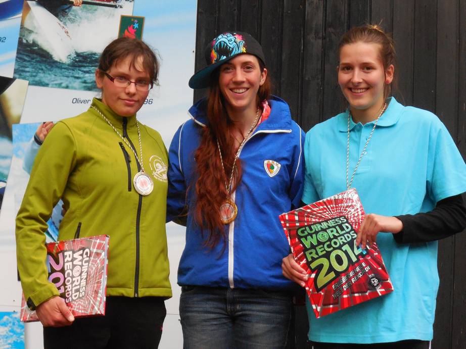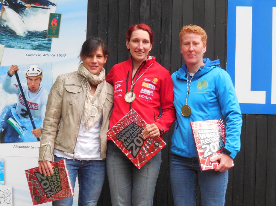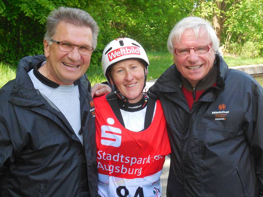 DKV Ranglisten und Qualifikationslauf für Weltmeisterschaft und Europameisterschaft 2014 ![]() Der Ausrichter Kanu Schwaben musste diesmal auf seinen Canadier Einer Herren Starter Normen Weber verzichten, da er sich am Sprunggelenk verletzt hatte und pausieren muss. Nationalmannschaft 2014 Mit einem sensationellen Lauf konnte sich Sabine Füßer an die Spitze der Wildwasser Abfahrtsspezialistinnen setzen und sie gewann mit 56,53 Sekunden den Sprint (Startauslösung an der Waschmaschine) vor der Donauwörtherin Manuela Stöberl, die mit 0,64 Sekunden Abstand auf dem zweiten Platz folgte (Manuela startet seit Jahren sehr erfolgreich für den KK Rosenheim). Die drittplatzierte bei den K 1 Damen war Alke Overbeck vom PSV Braunschweig mit 57,48 Sekunden Fahrzeit. Den pfeilschnellen Abfahrtssprintern zuzuschauen, das macht einfach Spaß. Im Ziel angekommen, konnte sich Sabine mit schmerzverzerrtem Gesicht vom Schwabenpräsident Horst Woppowa in die Arme nehmen lassen, aber sie war auch äußerst glücklich über ihren Sieg. Canadier Fahrerin Sabrina Barm vom Nachbarverein AKV beeindruckte durch ihre starke Fahrleistung auf dem Olympiakanal und wird bei der Weltmeisterschaft im italienischen Valtellina im deutschen Trikot mit an den Start gehen. Der Sprecher Gregor war ganz begeistert von ihrer Fahrweise und lobte ausdrücklich ihre enorme Steigerung gegenüber dem Vorjahr, auch da konnte sie schon ihr Talent und ihren Fleiß im Training beim Sprint zum Ausdruck bringen. Also zwei Fahrerinnen aus der Slalomhochburg Augsburg im Wildwassersprint bei der WM 2014 mit am Start. Der Schwabenkanute im Canadier Einer Fahrer Normen Weber muss noch abwarten was der DKV Trainerrat entscheidet, ist er bei der Weltmeisterschaft mit dabei? Von links: Horst Woppowa, Sabine Füßer, KH Englet Den Teilnehmern hat es ausgenommen gut in Augsburg gefallen und bei der Siegerehrung äußerte der Kanu Schwaben Vorstand Horst Woppowa: „ wir – die Ausrichter von Kanu Schwaben – freuen uns bereits jetzt schon auf das nächste Jahr, wenn die Wildwasser Sprint Kanuten wieder Rennen auf der Olympiastrecke austragen. Aber erst einmal beginnt nun die heiße Phase mit all den internationalen Wettkämpfen und wir wünschen dem deutschen Nationalteam ein erfolgreiches Kanujahr 2014“ Vor Ort trafen wir neben dem ICF Wildwasser Chairman Jens Perlwitz auch den Präsidenten des Hauptvereins TSV 1847 Schwaben Augsburg Hans Peter Pleitner, welche gemeinsam mit Karl Heinz Englet die Siegerehrungen gleich an der Strecke bei schönstem Wetter vornahmen. Ergebnisse vom Sonntag, 11.05.2014 des Finallaufes pro Disziplin Canadier Einer Junioren 1. FLADUNG Moritz KCF Kanu Club Fulda 61.19 0.00 2. SUELZER Janosch FFB Faltbootfreunde Brühl 61.26 +0.07 3. HARTSTEIN Jannik KCD Kanu Club Düsseldorf - Hamm 63.28 +2.09 Canadier Einer Herren 1. PESCH Dominik FFB Faltbootfreunde Brühl 57.18 0.00 2. HEILINGER Tim RKC Rhein-Kanu-Club Köln 58.69 +1.51 3. ECKERT Jasper KCF Kanu Club Fulda 63.62 +6.44 Canadier Einer Damen/Jun. 1. BARM Sabrina (Bild rechts) AKV Augsburger Kajak Verein 69.80 0.00 2. BARTH(JUN) Lea Sophie KCS Kanu-Club Sömmerda 74.23 +4.43 3. NEITZ(JUN) Julia MSV MSV Buna Schkopau 130.60 +60.80 Kajak Einer Jugend männlich 1. MASSINI Christopher KCF Kanu Club Fulda 59.52 0.00 2. SCHLESINGER Valentin KSK Kanusportfreunde Team Köln 60.66 +1.14 3. KLAUS(SCH) Tobias LKC Ludwigshafener Kanu Club 66.99 +7.47 Kajak Einer Junioren männlich 1. REITH Aaron KCF Kanu Club Fulda 53.99 0.00 2. WIRTZ Roman FFB Faltbootfreunde Brühl 54.66 +0.67 3. HARTSTEIN Jannik KCD Kanu Club Düsseldorf - Hamm 54.95 +0.96 Kajak Einer Herren 1. BONG Tobias RKC Rhein-Kanu-Club Köln 51.88 0.00 2. VERHAAGH Sebastian NED Nederlande 52.22 +0.34 3. BEERSCHWENGER Bjoern RKC Rhein-Kanu-Club Köln 52.88 +1.00 4. GIERENZ Lukas RKC Rhein-Kanu-Club Köln 52.99 +1.11 Kajak Einer Jugend weiblich 1. LAUERMANN Carla KSG Kanu Sport Gemeinschaft Köln 65.18 0.00 2. KOESTLE Lisa WSW Wassersport Wiesbaden 1921 68.21 +3.03 3. MUELLER Viktoria KCD Kanu Club Düsseldorf - Hamm 71.24 +6.06 Kajak Einer Junioren weiblich 1. JAEDICKE Meghan RDE Ring der Einzelpaddler Hamburg 59.69 0.00 2. ABBING Lydia KSK Kanusportfreunde Team Köln 60.80 +1.11 3. ECKERT Jil-Sophie KCF Kanu Club Fulda 62.13 +2.44 Kajak Einer Damen 1. FUESSER Sabine KSA Kanu Schwaben Augsburg 56.53 0.00 2. STOEBERL Manuela KKR Kajak Klub Rosenheim 57.17 +0.64 3. OVERBECK Alke PSV Polizeisportverein Braunschweig 57.48 +0.95 Canadier Zweier Herren 1. NIES Matthias/PESCH Dominik FFB Faltbootfreunde Brühl 56.92 0.00 2. WIRTH(JUN) Roman/SUELZER(JUN) Janosch FFB Faltbootfreunde Brühl 58.22 +1.30 3. BRUECKER Rene/LIPPERHEIDE Moritz NRW Renngemeinschaft NRW 61.07 +4.15 Die WM Teilnehmer werden vom DKV Trainerrat offiziell benannt und bestätigt. Marianne Stenglein/Kanu