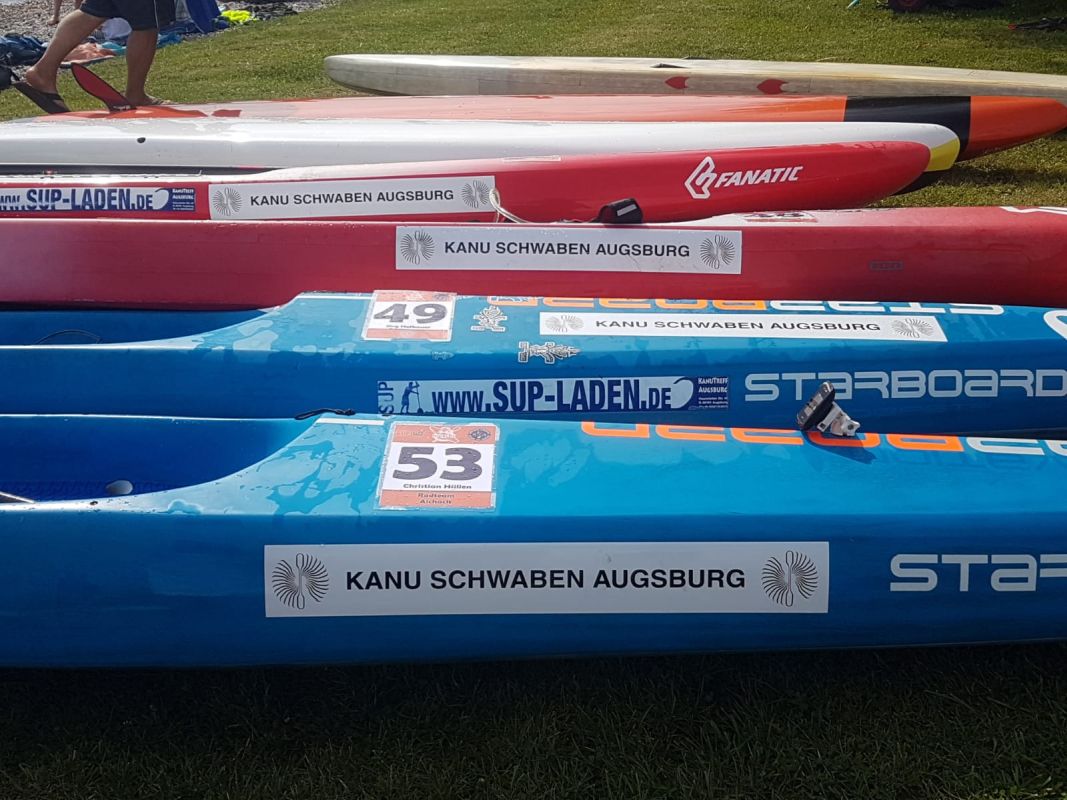 SUP. ![]() SUP oder Stand up Paddling ist mittlerweile weltweit beliebt Der Sportler steht aufrecht auf dem Surfbrett und paddelt mit einem Stechpaddel. Dabei wird die Seite, auf der gepaddelt wird, regelmäßig gewechselt. Entweder wird der SUP-ler es als reinen Freizeitsport betreiben, oder auch an Wettkämpfen teilnehmen. Ziel fast aller Wettkämpfe ist es schnellstmöglich eine bestimmte Strecke zurückzulegen. Als Wettkampfsport werden vor allem die im Folgenden genannten Disziplinen unterschieden. · Beach Race: Streckenverlauf in Ufernähe um mehrere Bojen. Ziel und Start eines Beach Race liegen auf dem Strand. · Long Distance: Langstrecken zwischen 6 und 12 km Länge. · Sprint Distance: Kurzstrecken von max. 500 m. Bis zu 6 Teilnehmer starten zeitgleich. · Whitewater: Strecken mit Wendemarken. Mehrere Teilnehmer starten zeitgleich. · Wave: Bewertung von Manövern in Wellen innerhalb eines definierten Zeitfensters. Ein Trupp Schwabensportler trainiert regelmäßig – auch im Winter – und haben einen Riesenspaß mit dem zwischenzeitlich festen SUP – Team. Federführend konnten wir bisher von Normen Weber als ehemaliger Wildwasser Rennsportler berichten, denn er holte sich international sowie national schon viele SUP Medaillen. Aber…. Dabei wollen wir über unsere weiteren begeisterten SUP -ler aus den Reihen der Schwabenkanuten gerne berichten und freuen uns sehr, dass wir mit Thomas Böwing und seiner Truppe Material über ihre Aktivitäten bekommen. Wie wie wir uns gefunden haben: natürlich auf dem Wasser, wir sind inzwischen 8 begeisterte SUP’ler. Wie kam Thomas zum SUP? „Selbst habe ich erst 2018 das SUP auf dem Hopfensee entdeckt und im Winter 2018/19 in Australien dann mit Freunden weiter ausgebaut. Zurück in Augsburg habe ich mir mein erstes iSPU (aufblasbares) beim Wolfgang Bolg gekauft. Die große Begeisterung kam erst durch den Jörg, denn er hat mich zu meinem ersten SUP Rennen auf den Pilsensee mitgenommen. Das hat mich dann so begeistert, obwohl ich nach ca. 7 km mehr im Wasser gelegen hatte (die Wellen waren durch den aufkommenden Wind zu hoch für mich) als ich auf dem Board stand, bin aber dann noch ins Ziel gekommen (und war auch nicht der letzte). Dann folgten noch ein paar Rennen und unsere tollen Ausflüge auf dem Lech, Forggensee, Wörthsee, Ammersee und die vielen Trainingstreffen am Mandichosee (Staustufe 23) mit meinen SUP Freunden. PS: Dieses Jahr gab’s den ersten Wandkalender mit Rennterminen und den besten Fotos von 2021 für jeden SUP Paddler von uns als Dankeschön für die vielen schönen Stunden auf dem Wasser.“ Die folgenden Termine stehen jetzt bei Thomas in nächster Zeit an und er wird uns - wenn er mit seinen Vereinskameraden unterwegs ist - gerne mit Fotos und auch ![]() Vielleicht klappt es zeitlich ja auch, hier einmal als Zuschauer:in mit vor Ort zu sein? Renntermine: SUPALOT / Altmühlsee vom 18.-19. Juni 2022 Link: https://supalot.de/home.html Radolfzell / Bodensee vom 26.-28. August 2022 Dort findet die Deutsche Meisterschaft statt Link: https://www.kanu-radolfzell.de/cmsa/index.php/veranstaltungen/sup Pilsensee / Bavarian Waters am 17.09.2022 Link. https://www.bavarianwaters.com/news/sup-bayerische-meisterschaft-alps-trophy Auch der folgende Link ist für das Ranking sehr interessant: https://www.sup-alps-trophy21.com/