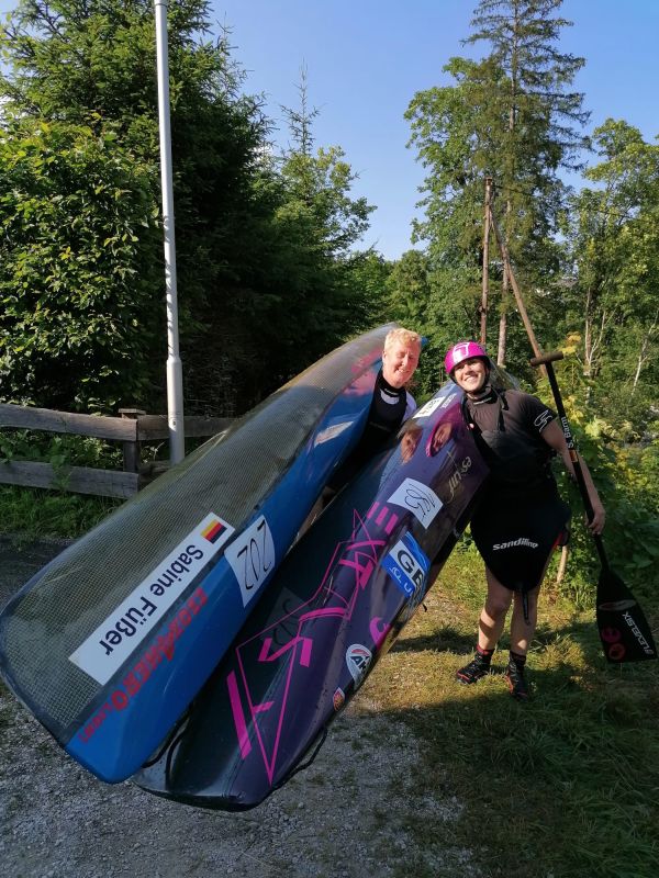 Strecke. Sabine Füsser startete zudem noch bei den Damen im Kajak Einer und wurde im Sprint Vize-Deutsche Meisterin und auf der Langstrecke schrammte sie mit Platz 5. knapp am Podest vorbei. Die nächsten Deutschen Meisterschaften werden 2023 auf der Simme mit dem Schweizer Kanu Verband zusammen ausgetragen und in kürze steht auch noch die Entscheidung aus, ob es 2023 auf dem Augsburger Eiskanal die nächste Kanu-Wildwasser-Sprint Weltmeisterschaft geben wird. Dazu hat auch Normen Weber Bereitschaft gezeigt, als dann 37-jähriger, international noch mal voll anzugreifen. Seine Leistung im Canadier ist aktuell weiterhin in Deutschland anscheinend unantastbar und somit gewann er hier auf der Saalach seinen 40 Deutschen Meistertitel für die Kanu-Schwaben-Augsburg.
