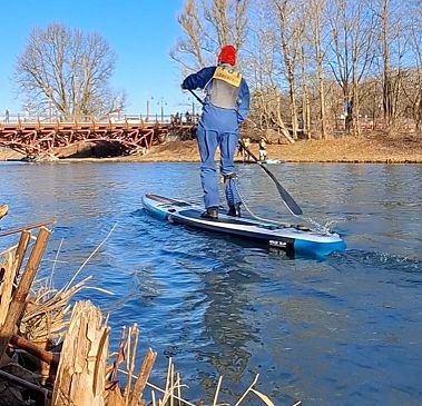 München am Isarkanal statt. Das Wetter zeigte sich von seiner besten Seite - bayerisches Wetter - blauer Himmel und Sonnenschein. Rund 80 Starter, davon acht SUP'ler nahmen die Herausforderung der 8 km langen Strecke des Isarkanals an. ![]() Unter den SUP'lern gewann das Rennen Jan Mönch vor Arnd Dünzinger und Ervin Rummel. Von den Kanu Schwaben war Thomas Hanke-Hanel als einziger in München dabei und er belegte den vierten Platz mit ISUP. Wenn auch die Sonne schien, so war das Wasser doch ganz schön kalt, aber das focht Thomas H.-H nicht an, er ist sowieso bei Wind und Wetter stets unterwegs und war gut eingepackt. Wir wünschen ihm und den anderen KSA SUP'lern weiterhin viel Spaß in ihrem Sport und man sieht sie ja ständig beim Training, wenn sie nicht auf Wettbewerben unterwegs sind. Der nächste Lauf findet bereits am 23.02.2025 statt und zwar in Rosenheim. Marianne
